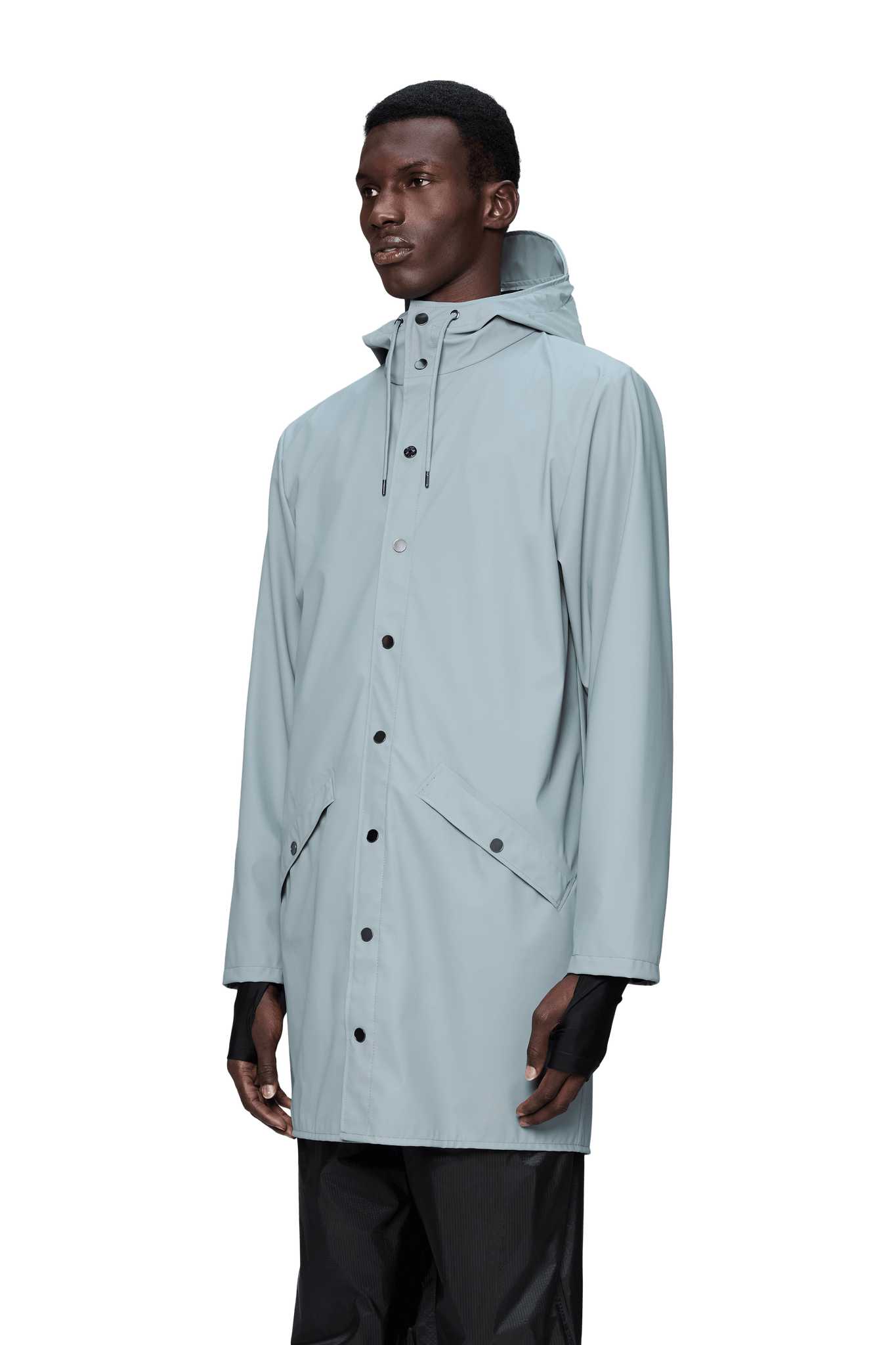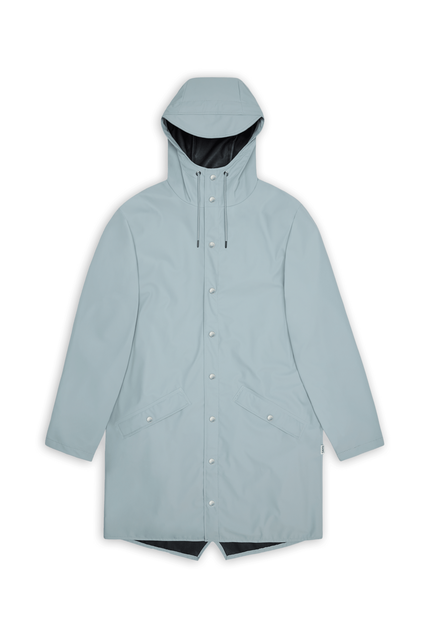 Diese Regenjacke ist eine lange Version von Rains' klassischer Regenjacke. Sie verfügt über eine Leiste mit Druckknöpfen zum Verschluss, eine Kapuze mit eingebauter Kappe und zwei Seitentaschen mit Druckknöpfen. Die Ärmel sind mit Druckknöpfen versehen, sodass sie locker oder eng sitzen.