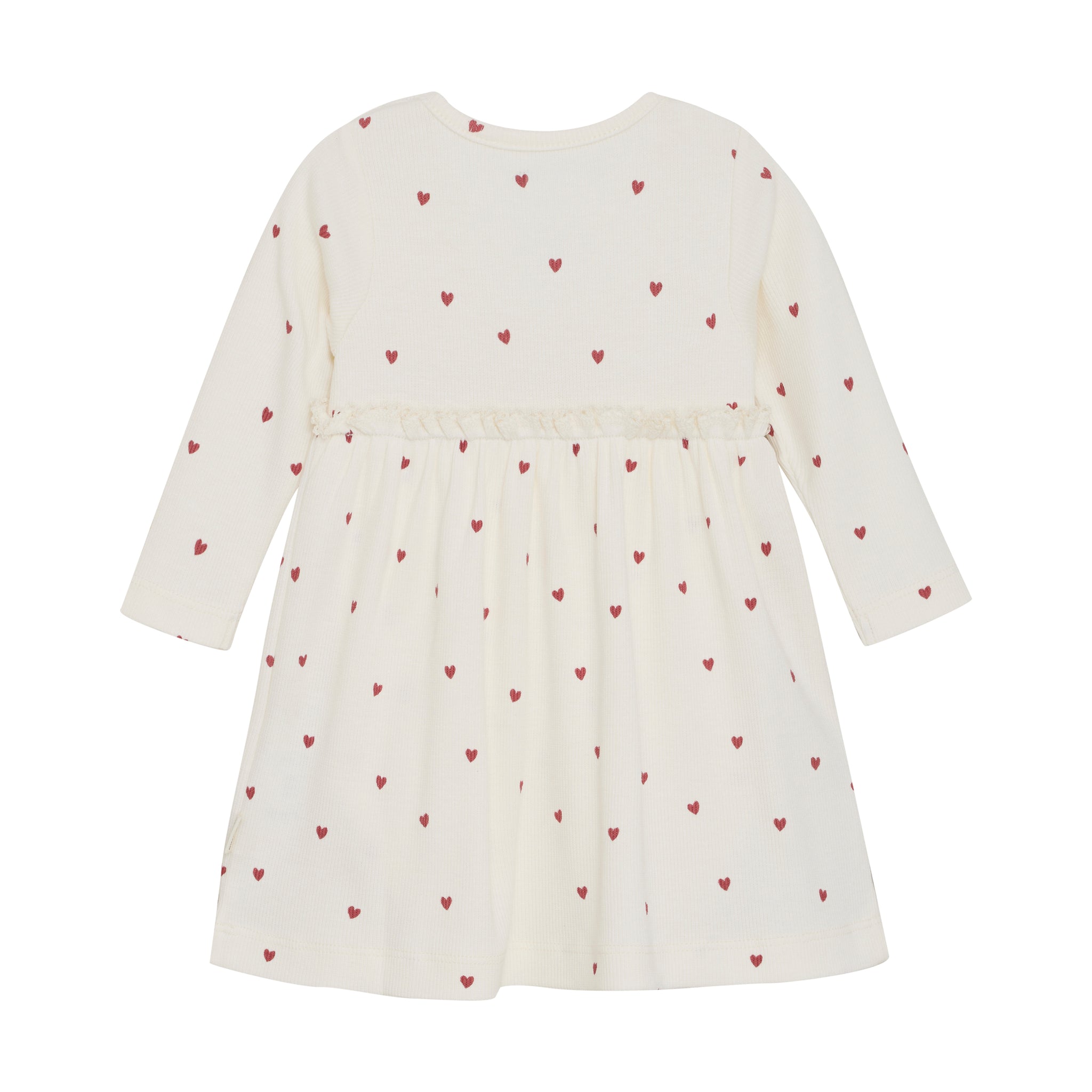 Süßers langärmeliges Kleid mit elastischer Taille und Rüschen. Das Kleid hat Druckknöpfe am Rücken für einfaches Anziehen und eine weiche Passform. Perfekt für den Alltag. Zertifiziert durch OEKO-TEXÆ STANDARD 100 Cert. No. 2276-364 DTI 65% Viscose/ 30% Baumwolle 5% Elastane