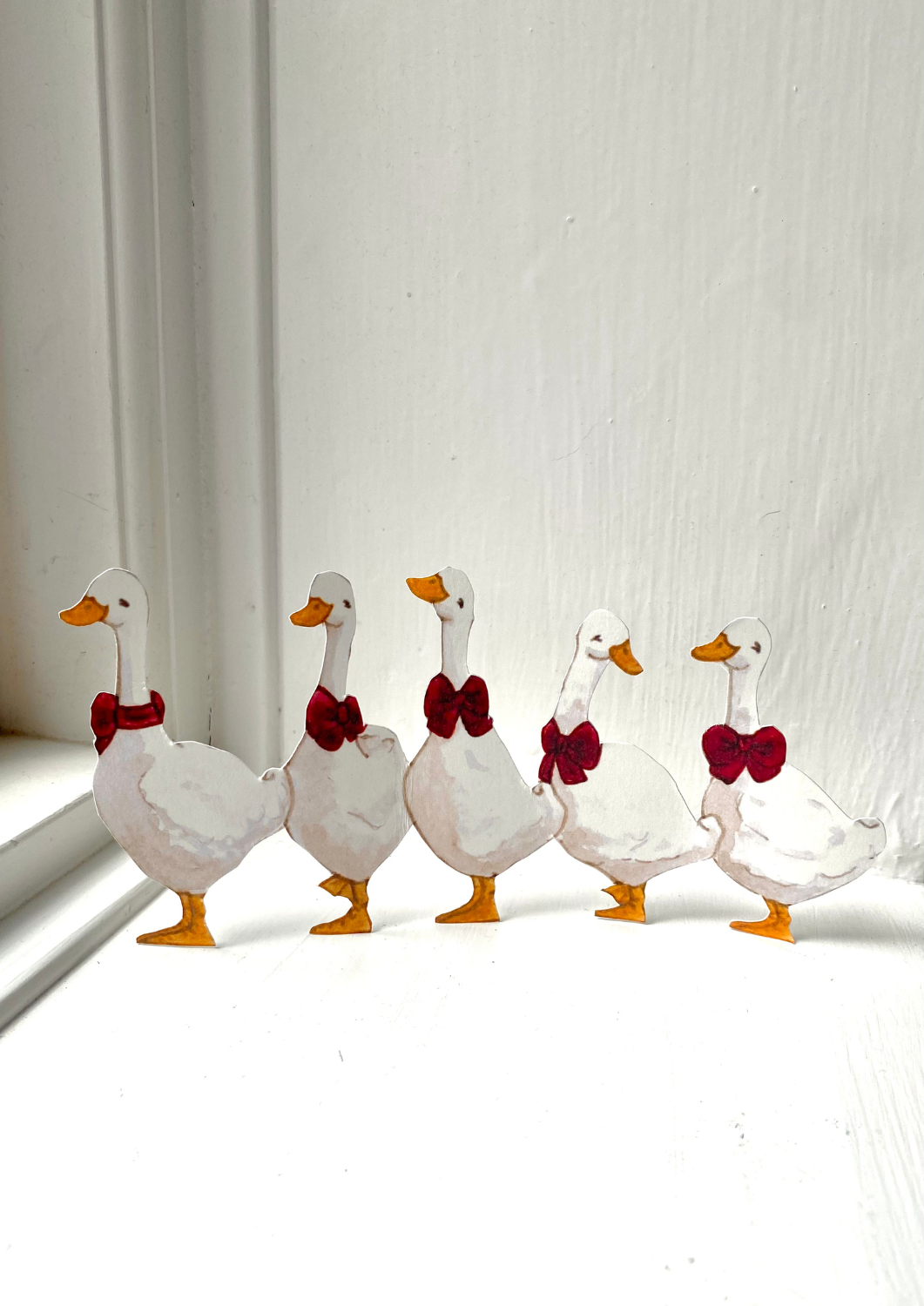 Weihnachtspapierausschnitte Gänse in einer Reihe